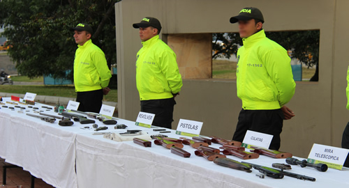 El allanamiento fue realizado por funcionarios de Policía judicial en una residencia ubicada en el barrio Carvajal, Localidad de Kennedy. Al interior del inmueble fueron halladas dos pistolas, un revólver, una pistola tipo esfero, dos granadas de fragmentación, una mira telescópica, accesorios para fusiles, escopetas y 176 cartuchos de diferentes calibres.La oportuna información de la comunidad fue clave para que la Policía Nacional en coordinación con la Fiscalía General de la Nación, llegara hasta éste inmueble que parecía ser una casa cualquiera del sector, allí, de acuerdo con las informaciones asistían personas a las que presumiblemente se les alquilaban toda clase de armas y se les vendían municiones para la comisión de diferentes hechos delincuenciales.Peritos especializados, realizan las experticias correspondientes para establecer cuáles de las armas incautadas estuvieron inmersas en homicidios o diferentes hechos contra la seguridad y convivencia ciudadana. El hombre capturado, fue presentado ante un juez de garantías por los delitos de porte, tráfico y comercialización de armas de fuego.