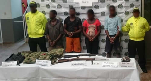 ​En el marco de la operación Republica Fase II, nuestros uniformados en coordinación con la Fiscalía General y la fuerza de tarea conjunta titán, desplegaron una diligencia de registro y allanamiento en los corregimientos de Vijaito, Piedra Grande y la Esperanza que permitió captura a cuatro presuntos miembros de la red de apoyo al terrorismo del frente de guerra occidental.En el operativo se logró la incautación de tres armas de fuego, uniformes de uso privativo de las fuerzas militares y  abundante material logístico. Los capturados fueron cobijados con medida de aseguramiento en centro carcelario "Anayanci" de la ciudad de Quibdó.Trabajamos incansablemente por su seguridad, ese es nuestro compromiso de corazón.