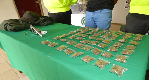 ​Este resultado contra el microtrafico se registró gracias a una diligencia de registro y allanamiento realizada por uniformados de la estación de Policía Rivera y la Unidad Básica de Investigación Criminal (UBI) quienes interceptaron a este hombre quien de manera sospechosa trató de evadir el control policial.En el hecho le fueron halladas 56 dosis de marihuana, un arma de fuego y un uniforme de uso privativo de las fuerzas militares.El capturado junto con los elementos fue dejado a disposición de la autoridad competente.