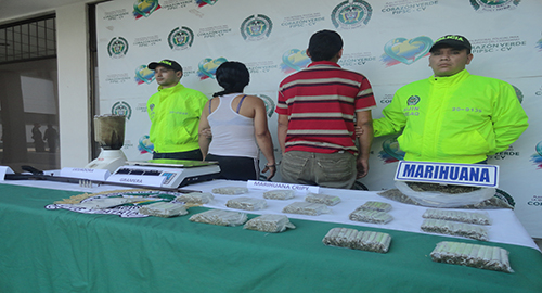 Durante operativos del plan choque "Florencia Segura" el grupo de la SIJIN, mediante información suministrada por la comunidad y actividades de investigación e inteligencia se logra realizar una diligencia de allanamiento donde se capturan 2 personas un hombre y una mujer y se aprehende un menor de 17 años, por el delito de tráfico Fabricación y Porte de Estupefacientes.En la residencia se incautó 645dosis de marihuana, 557gramos de marihuana 1 arma de fuego, la modalidad delictiva de estas personas, era utilizar su vivienda ubicada como fachada para cometer el ilícito y evadir el control de las autoridades.Los capturados, sustancia estupefaciente, arma de fuego y demás elementos incautados fueron dejados a disposición de la Fiscalía por el delito de Tráfico Fabricación o Porte De Estupefacientes, el adolescente aprehendido fue dejado a disposición de la Fiscalía Primera Seccional de responsabilidad penal para adolescentes URPA, por el mismo delito.