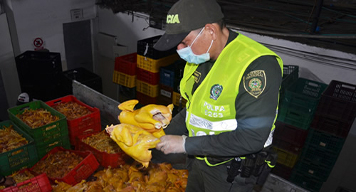 Los operativos se registraron en los municipios Los Patios y Puerto Santander, en desarrollo de operativos de control aduanero tendientes a contrarrestar el accionar de redes de contrabandistas dedicadas al tráfico de pollo.Con base en informaciones recopiladas en un proceso investigativo y la cooperación dada por la comunidad, se desplegó un operativo en el barrio Juana Paula, llegando hasta un inmueble donde clandestinamente funcionaba una planta de sacrificio. En el registro de inspección se encontraron máquinas caseras y otros elementos utilizados para llevar a cabo la actividad ilícita, así como canastillas con 621 pollos y 50 gallinas en pie. En el lugar se evidenció una grave contaminación para el alimento perecedero en cuanto a su manipulación, almacenamiento y tratamiento con colorantes, convirtiéndolo en un producto no apto para el consumo humano.Entre tanto, en la trocha "los Peracos", en la vía que comunica a Cúcuta con el municipio de Puerto Santander, fue inmovilizado un vehículo en el que se encontró una capa generalizada de pollo en canal y menudencias que no cumplían con los requisitos de salubridad y refrigeración.Los elementos valuados comercialmente en 25 millones de pesos, fueron dejados a disposición de la Dirección de Impuestos y Aduanas Nacionales (Dian).