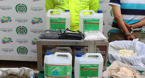 A través de información suministrada por parte de la Red de Cooperantes de la Policía Metropolitana de Bucaramanga, personal de la Sijin logró la captura en flagrancia de esta persona a la altura de la vereda el pantano ubicado a hora y treinta del casco urbano de Girón.Hasta este lugar los investigadores llegaron hallando un lugar rudimentario para el procesamiento de estupefacientes, logrando la incautación de 05 kilos de carbón activado, 02 kilos de cloruro de calcio,04 galones con sustancia liquida halojenante, activador I-33, 07 kilos de amoniaco, 02 grameras, 06 kilos de clorhidrato de cocaína, 02 hornos microondas, elementos rústicos para el proceso de filtrado y calidad de procesamiento de la cocaína (recipientes platicos, papel filtro, tela para colar y quitar impurezas), 03 kilos de base de coca, 03 kilos de bazuco y 14 costales de polietileno que en su interior contienen marihuana compacta y suelta con un peso de 274 kilos.Con estas acciones adelantadas por personal de la Policía Nacional se invita una vez más a la comunidad a que denuncie oportunamente a la línea de emergencia 123, al celular único de los cuadrantes o al correo electrónico mebuc.sugerencias@policia.gov.co como un canal directo de comunicación con los ciudadanos.