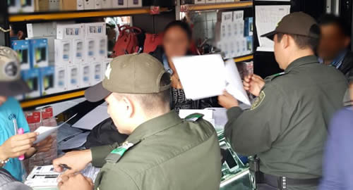 La Policía Fiscal y Aduanera y la Dirección de Impuestos y Aduanas Nacionales (Dian), asestaron fuerte golpe al contrabando de celulares en la capital colombiana; los operativos fueron realizados en establecimientos de comercio abiertos al público y en empresas transportadoras ubicadas en la zona céntrica de la ciudad donde se aprehendieron 6.000 celulares.Más de 300 uniformados se tomaron varios centros comerciales en la capital, donde se distribuían celulares sin la documentación requerida, así mismo se logró evidenciar que estos no contaban con los requisitos establecidos en la norma aduanera para el ingreso legal al país.La mercancía proveniente de China fue ingresada a Colombia utilizando varias modalidades; una de estas, es la encomienda. Los contrabandistas, utilizaban carros tipo tracto camión donde transportaban el ilícito, estos iban a comercializar los equipos móviles en varios puntos de la capital, cobrando hasta un 30% más del costo normal, generándoles cuantiosas ganancias.Para la Policías es de vital importancia la colaboración ciudadana, por ello le brinda recomendaciones para hacerle frente a este flagelo:1. No compre celulares en lugares no autorizados.2. Exija siempre la factura del equipo adquirido.3. Al comprar un celular verifique que los códigos correspondan con el equipo adquirido. En cifras, la Policía Fiscal y Aduanera en Bogotá en el año 2014 realizó aprehensión de 1.726 celulares por un valor de 275 millones de pesos y en lo corrido del 2015 ha aprehendido 7.442 celulares avaluados en 862 millones de pesos.