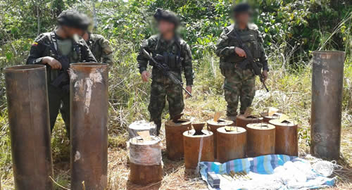 Mocoa, Putumayo. A través de acciones conjuntas, fueron hallados artefactos para atentar contra la fuerza pública y la población civil.