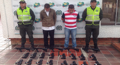 En las últimas horas la Policía Fiscal y Aduanera a través de un operativo de control logró la aprehensión de 23 culatiles para fusil con sus respectivos mecanismos retráctiles, así mismo la captura de 2 personas, el conductor y el auxiliar del bus quienes fueron sindicados por los delitos de fabricación, tráfico y porte de armas.Las piezas de armamento venían camufladas en bolsas negras en la parte superior del vehículo de servicio público cubiertas a modo de "caleta" en el espacio de ventilación. El Bus de servicio público fue abordado en el puesto de control ubicado en la entrada al municipio de Pamplona en la vía que de Cúcuta conduce Bogotá con aproximadamente 40 pasajeros a bordo, según investigaciones adelantadas por los uniformados de la POLFA estos proyectiles tenían como destino la capital de la República.El microtráfico de armas a través de encomiendas dentro de mercancía y camufladas en vehículos y equipajes se presenta en algunas zonas del país; en el año 2014 en las ciudades de Cúcuta y Bogotá, la Policía Nacional a través de su especialidad de Policía Fiscal y Aduanera logró la incautación de 36 armas y más de 1334 vainillas de diferente calibre piezas avaluadas en más de 46.897.430 millones de pesos.