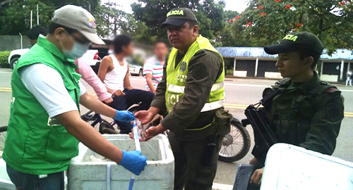 ​Con el propósito de contribuir a garantizar la salubridad de la comunidad, la Policía en coordinación con las autoridades territoriales de cada municipalidad, viene liderando una serie de controles orientados a verificar el transporte de alimentos perecederos sobre los ejes viales del Departamento.Es así como en la vía que conduce hacía el municipio de Puerto López, uniformados se incautaron de 40 kilos de pescado que no tenían el tallaje mínimo exigido, infringiéndose la Resolución 2086 de 1981, que hace referencia a las tallas mínimas de los peces de consumo, artes y métodos pesqueros. Estos peces transportados en una camioneta y avaluados en aproximadamente 400 mil pesos, quedaron a disposición de la autoridad nacional acuicultura y pesca "Aunap".