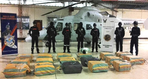 La Policía Nacional a través de la Dirección de Investigación Criminal e Interpol en su permanente ofensiva contra el tráfico de estupefacientes se incautó en aguas internacionales de 1.980 kilos de cocaína.En una operación conjunta liderada por la Dijin de la Policía, la Agencia Antidrogas de los Estados Unidos (DEA), la Unidad de Investigaciones Antinarcóticos de la Policía ecuatoriana y la Dirección Nacional de Espacios Acuáticos de la Armada Nacional de Ecuador, fueron interceptadas dos embarcaciones, una de ellas a 230 millas náuticas de la Isla San Cristóbal y otra a 200 millas al norte de la isla San Cristóbal, donde narcotraficantes transportaban un total de 1.980 kilos de clorhidrato de cocaína.Los tripulantes al percatarse de la presencia de las unidades de guardacostas, lanzaron varios bultos al mar para alivianar la carga de las lanchas y evadir el control mientras eran perseguidos por las autoridades. En la operación no se registraron capturas.
