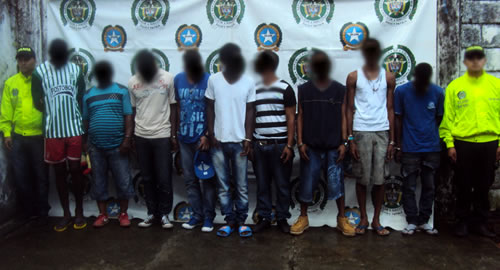 En desarrollo de operaciones de alto impacto tendientes a desmantelar estructuras que delinquen en Chocó y Buenaventura (Valle del Cauca), la DIJIN, en coordinación con la Fiscalía General de la Nación, capturó a 64 integrantes de la banda criminal "Clan Úsuga' y la organización delincuencial "la Empresa".En el puerto del pacífico colombiano, los investigadores de la Policía Nacional ubicaron a 48 criminales de dos organizaciones responsables de violentas confrontaciones, entre ellos a Eber Alegría, alias "Liso Negro" máximo cabecilla del "Clan Úsuga" en esa región del país y quien heredó el aparato sicarial de esa estructura tras la captura de alias "Resorte" en febrero de este año.Este criminal perteneció al frente 30 de las Farc, Manuel Cepeda Vargas desde el año 1998 hasta 2006, cuando fue capturado por el delito de rebelión. Al recobrar su libertad se unió a la conformada banda delictiva "la Empresa" (brazo armado de los rastrojos), en la que después de varios años, se posicionó como narcotraficante y cabecilla financiero. En 2012 se cambió de bando y al sellar alianzas con narcotraficantes de Buenaventura conocidos con el "Clan Bustamante" (todos hermanos y varios en proceso de extradición), promovió el ingreso a sangre y fuego de la banda criminal del "Clan Úsuga", con el fin de apoderarse de las rutas del narcotráfico que parten del pacífico colombiano a su vez, cobrar una cuota a otros vándalos quienes pretenden sacar estupefacientes desde esa región del país.Los otros 47 capturados eran los encargados de ejecutar homicidios selectivos y promover el cobro de extorsiones a comerciantes, con el fin de nutrir los ingresos ilícitos de la estructura. Se les señala de 22 muertes en los últimos seis meses en Buenaventura. Todos fueron judicializados y enviados a diferentes cárceles del departamento de Valle de Cauca. Otros dos delincuentes con pasado en banda "La Empresa", rival del "Clan Úsuga" fueron informados en prisión de los procesos en su contra.
