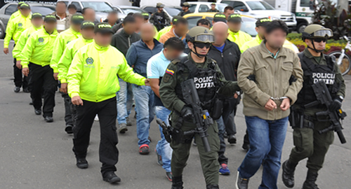 Otras 14 personas fueron dejadas a disposición de las autoridades solicitantesLa Policía Nacional capturó en el departamento de Santander en la vía que que comunica los municipio de Cimitarra – Puerto Araujo a alias 'pequinés', señalado como cabecilla de una organización dedicada al apoderamiento ilícito de hidrocarburos y otros delitos; así mismo desarticuló dicha estructura delincuencial que venía afectando notablemente la seguridad y tranquilidad de la comunidad.Alias 'pequinés' responderá ante la justicia por los delitos de apoderamiento de hidrocarburos, homicidio selectivo, desplazamiento forzado, tráfico de estupefacientes, porte ilegal de armas de uso privativo de las Fuerzas Militares y concierto para delinquir.Este hombre al parecer era quien controlaba los laboratorios para el procesamiento de estupefacientes en el departamento de Santander y en Puerto Boyacá, autorizaba el apoderamiento de hidrocarburos de los poliductos de una reconocida empresa petrolera del País, el tráfico de armas, ordenaba homicidios y el cobro de extorsiones a comerciantes de la zona, entre otros hechos delictivos. ContextoDe acuerdo con la autoridad investigativa en la década de los 80 esta persona recibió formación en la escuela 'O1', a cargo de "Henry y Gonzalo de Jesús Pérez", creadores de las autodefensas campesinas del Magdalena Medio. Para diciembre de 1991 alias 'pequinés', junto a alias 'Botalón", 'César', entre otros, delinquían en el corregimiento de San Fernando, jurisdicción de Cimitarra – Santander, se sometieron a un primer proceso de desmovilización nacional en el municipio de Puerto Boyacá.En febrero de 2001 fue condenado por el Juzgado Único Penal del Circuito Especializado de Manizales- Caldas, a pena de nueve años y dos meses de prisión, por infracción al decreto 1194 de 1989 (conformación de grupos de autodefensa, de sicarito o de justicia privada).El Bloque de las Autodefensas Campesinas de Puerto Boyacá, se desmovilizó en enero de 2006 en la vereda El Marfil con 742 hombres, sin embargo varios de sus integrantes no quedaron registrados como desmovilizados ante la ACR, entre ellos alias 'pequinés'.Año 2009: Después de la captura de alias 'César', hombre de confianza de 'Botalón', alias 'pequinés' empezó a ganarse la confianza y el apoyo de la comunidad residente en las veredas y corregimientos, simulando ser un ganadero y líder comunitario de esta región.Se determinó que la modalidad delictiva empleada por los integrantes de esta organización criminal, consistía en instalar válvulas ilícitas al poliducto de la empresa petrolera Ecopetrol S.A, con ciertas extensiones de manguera de alta presión, en los tramos Sebastopol-Tocancipá y Sebastopol-Salgar, con el propósito de extraer ilícitamente el hidrocarburo, el cual era transportado en vehículos tipo cisterna, hasta las principales ciudades del territorio nacional, como Bogotá, Medellín, Ibagué y Cali, para su comercialización en diferentes estaciones de servicio, otro tanto era utilizado como insumo en laboratorios clandestinos para el procesamiento de estupefacientes en la región del magdalena medio.Esta organización había optado por extraer el hidrocarburo en pocas cantidades, realizándolo al parecer en horas nocturnas, tiempo suficiente para obtener sumas que oscilaban entre los 10.000 y 11.000 galones de hidrocarburo.Finalmente, la organización contaba con la participación de conductores de vehículos tipo cisterna, quienes tendrían cierta información relacionada con sectores y rutas a nivel nacional, utilizadas para eludir los controles de la Fuerza Pública, y facilitar la documentación exigida por el Ministerio de Minas y Energía para el transporte de estos productos como la Guía Única de Transporte y las facturas de remisión para productos derivados del petróleo.