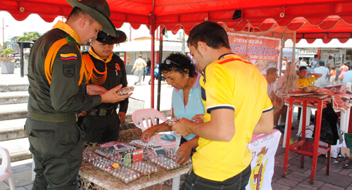 La Policía Metropolitana a través del Grupo de Carabineros y Técnicos Agropecuarios, realizó este fin de semana  en el parque Guadalupe Zapata, un encuentro de "Mercados Campesinos", en cual se presentaron a la  comunidad los diferentes proyectos y productos agrícolas, los cuales  se  logran  bajo la asesoría de los funcionarios policiales en cada uno los sectores rurales del Área Metropolitana. Entre los principales productos que fueron comercializados se encontraban deferentes hortalizas y legumbres como rábanos, cebollas francesas, repollo, la novedosa planta hibrido de cebolla y ajo en un solo tallo, lechuga Japonesa, huevos de gallinas alimentas a base de pastoreo, mojarra roja, además de derivados lácteos, queso, yogurt y mantequillas.En cada uno de  los  stand o puestos  de mercado  las personas además de tener la posibilidad de adquirir los productos, recibían información relacionada con los proyectos  agropecuarios de la Policía; los técnicos agropecuarios mediante conferencia,  videos y ayudas audiovisuales  ilustraron a  la ciudadanía el antes durante y después de cada etapa de producción que se llevan a cabo en la zona rural del Área Metropolitana de Pereira, invitando a los asistentes para que se vinculen y conozcan de nuevas alternativas agropecuarias que les permitan  mejorar su producción agropecuaria. La Policía Metropolitana de Pereira invita a la comunidad del Área Rural para que tomen contacto con los policiales adscritos a estos programas y se vinculen con los proyectos productivos de cada vereda y corregimiento en aras de aportar a la conservación del medio ambiente, convivencia y seguridad ciudadana.