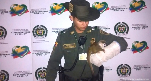 ​Gracias a la llamada de un ciudadano al cuadrante número dos del municipio de San Martín, en vía pública del barrio Canaima, uniformados reafirmaron su compromiso de corazón con la protección de la fauna silvestre, al rescatar un mico tití.Al parecer, el espécimen al intentar huir del ataque de los animales domésticos, fue arrollado por un vehículo que en esos momentos cruzaba por el sector, ocasionándole una herida considerable en la cadera. De inmediato y con las medidas especiales fue trasladado ante Cormacarena, para que fuera valorado por un veterinario y gestionar su reincorporación al hábitat natural.El apoyo ciudadano continúa siendo un pilar para construir comunidades pacíficas y solidarias con el medio ambiente, como uno de los mayores tesoros.