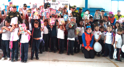 Alumnos de preescolar y primaria se vieron beneficiados con la entrega de 400 kits escolares La Policía Nacional está acompañando de forma continua cada una de las instituciones educativas, teniendo en cuenta los procesos formativos de los estudiantes con actividades preventivas, disuasivas y de control, orientados a mejorar las condiciones de convivencia y seguridad ciudadana.Es por esto que la Policía Metropolitana de Pereira bajo el liderazgo del señor Coronel Ricardo Augusto Alarcón el día de hoy desarrollo la entrega de 400 kits escolares a estudiantes de esta institución educativa, que serán de gran utilidad para su periodo de formación, en compañía de funcionarios de la especialidad de prevención y educación ciudadana, grupo de infancia y adolescencia, personal de la red de apoyo y comunicaciones y personal de la estación de Policía Dosquebradas.​Donde se beneficiaron 240 niños y niñas quienes se les realizo actividades recreativas por parte del grupo de recreación caritas felices, se les presento show canino por parte de uniformados de la especialidad de carabineros; al igual se les dio a conocer mensajes alusivos a prevenir situaciones como el matoneo estudiantil, consumo y venta de estupefacientes, riñas al interior y entornos escolares, bulling y deserción escolar.
