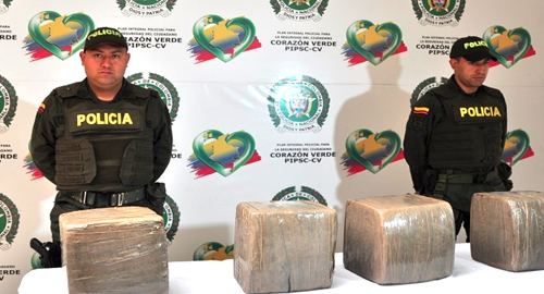 En la implementación del Modelo Nacional de Vigilancia Comunitaria por Cuadrantes y el Plan Choque "VAMOS SEGUROS", unidades adscritas al Grupo de Reacción Motorizada GAMAS, logran la  incautación de cuatro bloques de marihuana prensada envuelta al parecer en dos costales la cual estaba lista para ser comercializada en dosis en el departamento.Mediante labores de inteligencia y fuente humana los uniformados son alertados acerca del descargue de los costales sospechosos los cuales fueron camuflados en el borde de la carretera del sector del barrio Gaitán, antes de llegar al lugar varios sujetos notan la presencia policial y emprenden la huida.Los uniformados desplegaron la inspección al lugar donde hallan estos costales que tenían en su interior 4 bloques prensados de marihuana siendo incautados y puestos a disposición de la autoridad competente.