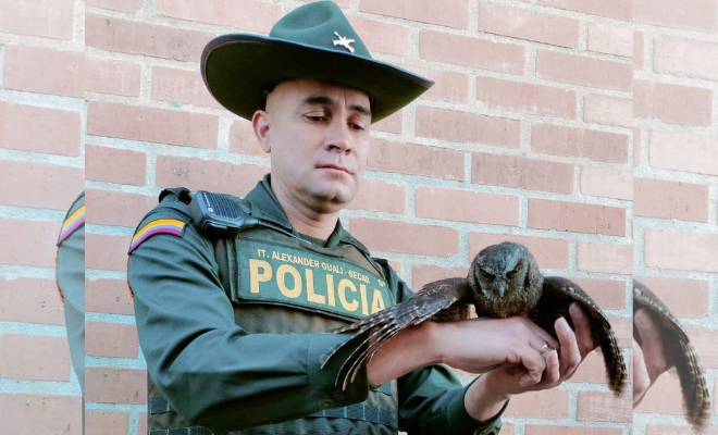 Como resultado de campañas de prevención para evitar la tenencia o tráfico de animales silvestres adelantadas por la Policía Nacional en Pasto a través del personal de la Seccional de Carabineros y Protección ambiental, se logró el rescate de un búho.