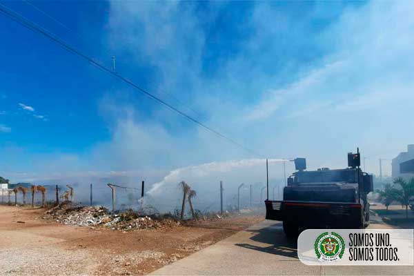 La situación está tan complicada que, la Policía Nacional en coordinación con el Comando del Escuadrón Móvil Antidisturbios No 21 DECES, se ha visto en la necesidad de apoyar con los vehículos tipo tanqueta lanza agua y sus uniformados capacitados en el control de diferentes incidentes y conatos de incendio que se han presentado en lo transcurrido del año 2021.