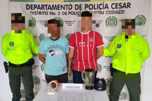 El hecho se registró mediante una diligencia de registro y allanamiento ordenada por la Fiscalía 26 Seccional de Agustín Codazzi, donde fueron detenidas dos personas a quienes se les encontraron 117 cigarrillos de marihuana listos para ser distribuidos y una licuadora para triturar el alucinógeno.