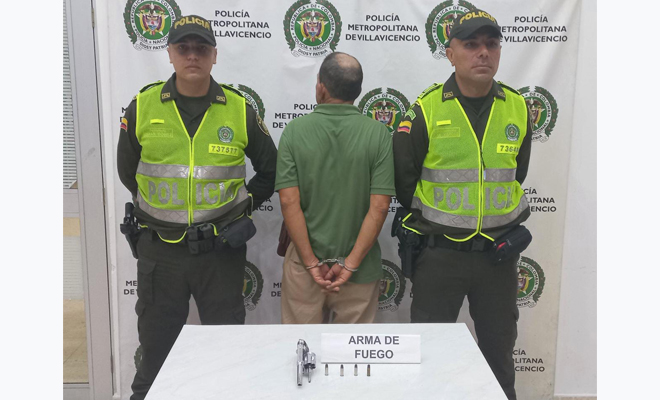 En medio de planes de registro y control que permanente viene realizando La Policía Metropolitana de Villavicencio en establecimientos abiertos al público con el fin de prevenir hechos que atenten contra la seguridad y la vida de los habitantes de esta región del país, en las últimas horas fue capturado en flagrancia un hombre de 57 años, por el delito de fabricación, tráfico o porte de armas de fuego.