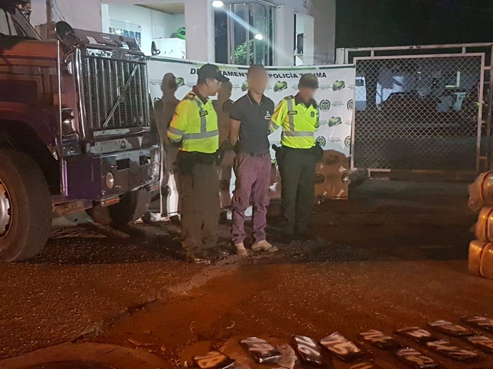 En desarrollo del plan de choque lll construyendo seguridad y en atención a la implementación del plan operacional para reducir el delito por medio de los diferentes planes y controles efectuados en las vías del departamento, la Policía del Tolima se permite informar que siendo aproximadamente las 03:50 de la tarde en el kilómetro 09 vía Honda – Dorada, sector vereda perico, jurisdicción del municipio de Honda, unidades de la seccional de tránsito y trasporte Tolima observan estacionado un vehículo tipo tracto-camión, conducido por un hombre de 27 años de edad, natural de Yarumal Antioquia, el cual fue evidente su nerviosismo al momento de solicitar registro a persona y al automotor, motivo por el cual fue trasladado a las instalaciones policiales para un inspección minuciosa.