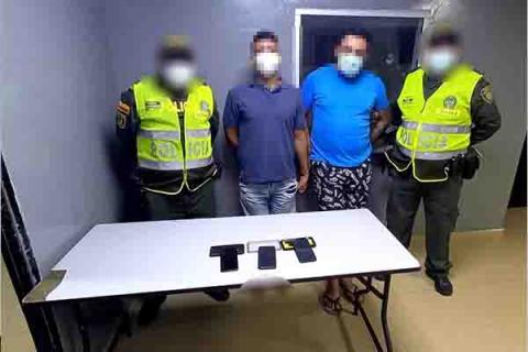 Gracias al trabajo mancomunado con la red de partición ciudadana y a la rápida reacción de unidades del cuadrante, se obtuvo la captura de dos personas que aprovechando que se movilizaban en un vehículo tipo de taxi, transitaban en el sector norte de la ciudad y con arma de fuego intimidaron a varias personas hurtándoles las pertenencias. Rápidamente los policiales fueron alertados de los presuntos delincuentes y mediante plan candado fueron capturados en flagrancia con los elementos hurtados, en la carrera 19 con calle 21 barrio las Nieves sector Sur Oriente de la ciudad.