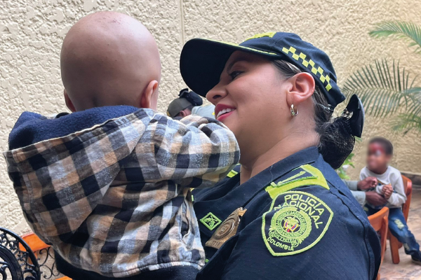 Con motivo de la conmemoración del Día Contra el Cáncer Infantil, y en cabeza de la señora Mayor Deisy Aponte, jefe del Modelo Nacional de Vigilancia Comunitaria por Cuadrantes, uniformados llegaron hasta el barrio Prado Centro de Medellín con el fin de llenar de sonrisas y amor a un grupo de pequeños que padecen esta enfermedad.