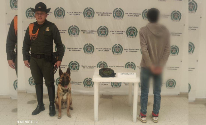 Mediante actividades de registro y control en equipajes, personas, bodegas y vehículos intermunicipales, personal policial en compañía de "Toto" un canino en detección de sustancias narcóticas, logró la captura de una persona por el delito de Fabricación, Tráfico o Porte de Estupefacientes, conforme al Artículo 376 del Código Penal. Además, de incautar varios gramos de marihuana.
