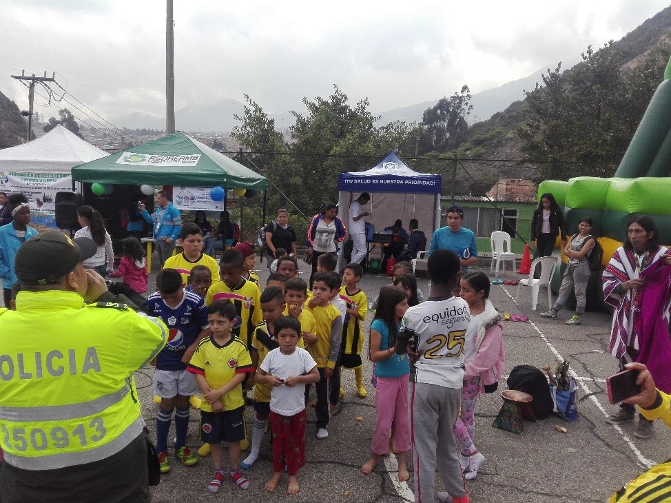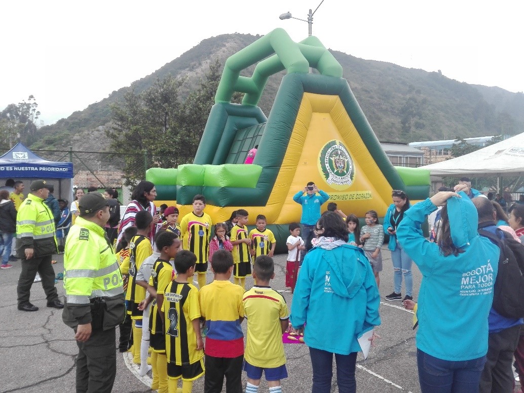 La policía Nacional por medio del Grupo de Vínculos y Relaciones estratégicas de COEST de la Dirección General llevó su parque móvil y su grupo de recreación, previa coordinación con el grupo de prevención de la estación de Policía E-18 Rafael Uribe Uribe, carabineros montados y personal de las diferentes áreas de la alcaldía mayor de Bogotá llegamos a este sector de la localidad, donde realizamos la celebración de la feria ciudadana.