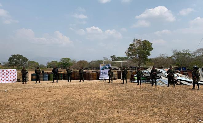 En el desarrollo de la segunda fase del Plan Choque “el que la hace la paga”, Más Cerca Del Ciudadano y la estrategia de lucha frontal contra el contrabando y el comercio ilícito, el Departamento de Policía Cesar a través de la Policía Fiscal y Aduanera, en coordinación con el Ejército Nacional y la Dirección de Impuestos y Aduanas Nacionales, logró intervenir uno de los grandes centros de acopio de contrabando de hidrocarburos en el sur del departamento.