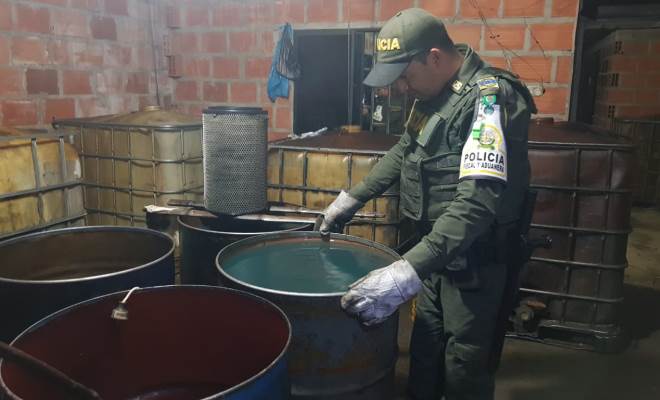 En acción realizada por efectivos de la Policía Fiscal Aduanera, en el corregimiento de El Juncal jurisdicción del municipio de Aguachica Cesar, se logra la aprehensión de más 13.640 galones de combustible avaluados en más de 60 millones de pesos, los cuales no cuentan con la marcación autorizada por Ecopetrol para los combustibles de procedencia nacional, según lo estipulado en la normatividad colombiana, quedando a disposición de la Dirección de Impuestos Aduanas Nacionales DIAN.