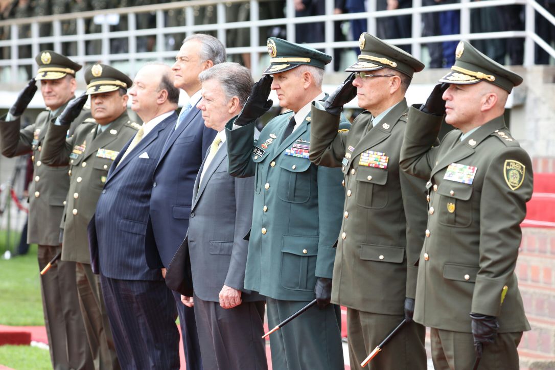 En el Campo de Ceremonias de la Escuela de Cadetes de Policía ‘General Francisco de Paula Santander’, el presidente de la República, Juan Manuel Santos Calderón, presidió la ceremonia de ascensos al grado de Mayor General de los brigadieres generales Jorge Luis Vargas Valencia, director de Investigación Criminal e INTERPOL (DIJIN); Hoover Alfredo Penilla Romero, comandante de la Policía Metropolitana de Bogotá, y Álvaro Pico Malaver, Jefe de la Unidad para la Edificación de la Paz (UNIPEP).