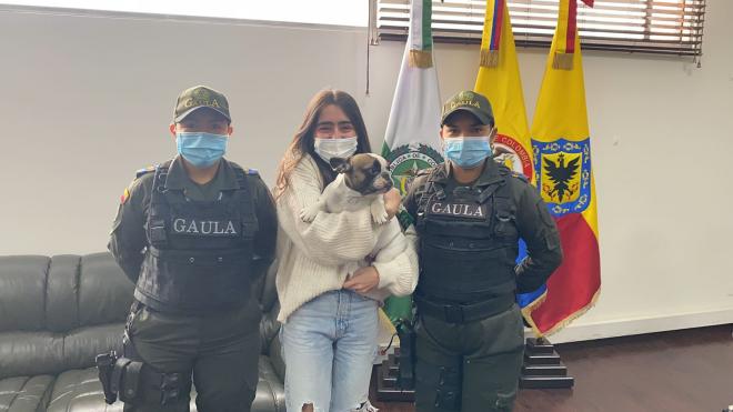 El llamado de la propietaria de la mascota, realizado a través de las redes sociales, alertó a los investigadores del GAULA, que iniciaron un inmediato proceso de búsqueda y localización, permitiendo que hacia las 3:45 de la madrugada de hoy miércoles, solo unas horas después del acto delincuencial, llegaran hasta la avenida Primero de Mayo con avenida Boyacá, donde un hombre hizo entrega del animal.