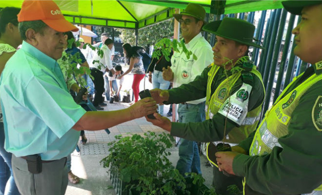 Desde diferentes puntos del municipio, el Grupo de Protección Ambiental y Ecológica de la Policía y la Secretaria Agropecuaria y de Medio Ambiente, entregaron a los feligreses 400 árboles para reemplazar el uso de ramos fabricados con productos naturales, los cuales podrán sembrar y contribuir a la reforestación en la municipalidad.