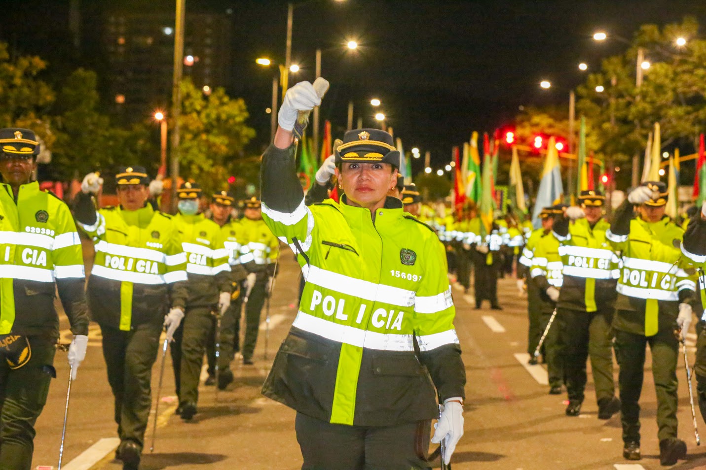 Con la izada de la bandera de Colombia en los hogares y lugares de trabajo se da comienzo a un destacado desfile por parte de la Policía Nacional y las Fuerzas Militares, se apertura esta celebración, exaltando la labor de la fuerza pública que a lo largo de la historia, ha sido garante de la libertad del pueblo colombiano, donde los asistentes al evento pudieron observar el paso firme de la tradicional banda de paz y los uniformes portados por cada una de las unidades del Nuevo Modelo del Servicio de Policía Orientado a las persona y territorios, Carabineros y Protección Ambiental, la Seccional de Protección y Servicios Especiales, Tránsito y Transporte, bloque de mujeres, SIJIN, GAULA, Auxiliares de Policía, entre otras, destacando la oferta institucional y mostrando a la ciudadanía parte de nuestra esencia.