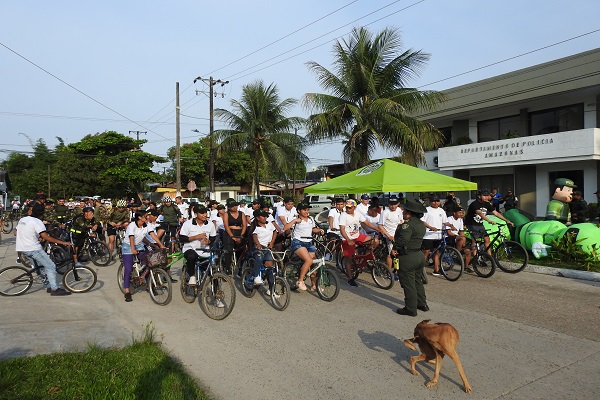 La actividad que recorrió la vía Leticia – Tarapacá, sector los kilómetros, culminando en el Comando de Policía Amazonas, contó con una masiva participación de la ciudadana, miembros del Ejército Nacional, Armada Nacional y demás entidades Gubernamentales, Ambientales, Educativas y Empresas Privadas del Municipio.