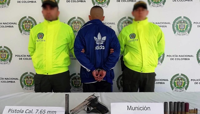 Por otra parte, en la manzana 2 del conjunto residencial Bosques de La Acuarela del Municipio de Dosquebradas, se logró la captura de un hombre de 39 años de edad, natural de Bogotá, al cual mediante requisa le fue hallada en su poder un arma de fuego tipo pistola marca Walther PPK calibre 7.65 milímetros con un proveedor.
