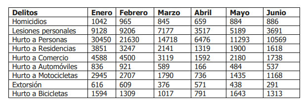 • Colombia desde enero, registra una tendencia sostenida de reducción del delito, alrededor del 33%.
