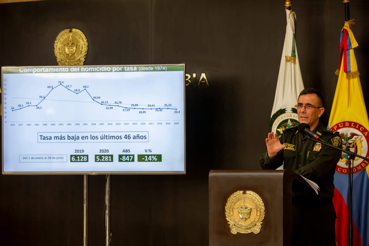 La disminución continuó su tendencia y se aceleró 10,4 puntos porcentuales más, llegando a -14% el 28 de junio, teniendo en cuenta que los homicidios y la criminalidad se han transformado a nivel mundial, con ocasión de los cambios de las dinámicas en las naciones.