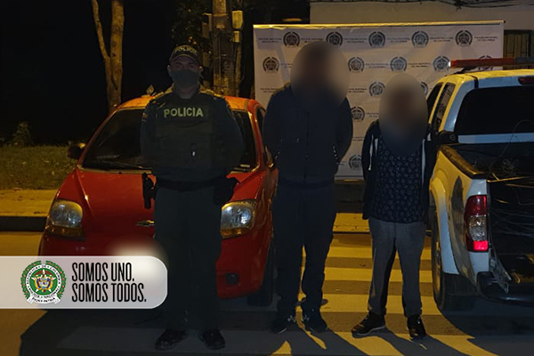 La acción oficial se registró en la vereda Barro Blanco corregimiento de Santa Elena del municipio de Medellín, donde fue observado un vehículo de color rojo, estacionado a un costado de la vía y al lado 3 personas, dos de ellos enrollando cable, quienes, al notar la presencia de los uniformados, emprenden la huida hacia zona boscosa, en la reacción policial se logró dar captura a dos de ellos.