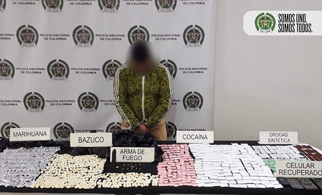 La Policía Nacional en el desarrollo del Plan Choque “Construyendo seguridad”, mediante el monitoreo a través de cámaras de video vigilancia, logró en las últimas horas la captura de un hombre e incautación de gran cantidad de estupefacientes y droga sintética.