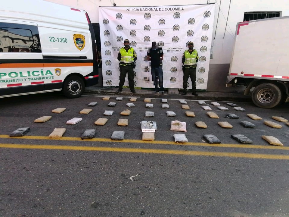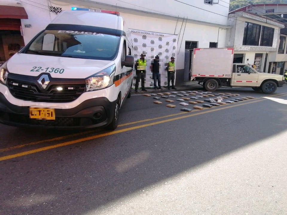 Los hechos se presentaron mediante puesto de prevención y control realizado por el personal Policial sobre el Kilómetro 56 vía Manizales – Fresno, sector Mesones corregimiento de Padua del municipio de Herveo, los cuales realizaron señal de pare a un sujeto de 33 años, quien se movilizaba en un vehículo tipo de carrocería furgón, donde al momento de realizarle registro minucioso a persona y automotor fueron hallados mediante la modalidad de ocultamiento tipo caleta doble piso recubiertos en plástico, 52 paquetes envueltos en bolsas, con un peso de 57 kilos de marihuana equivalentes a cerca 57.000 gramos representados en cerca de 100 mil dosis, avaluados aproximadamente en $78.000.000.