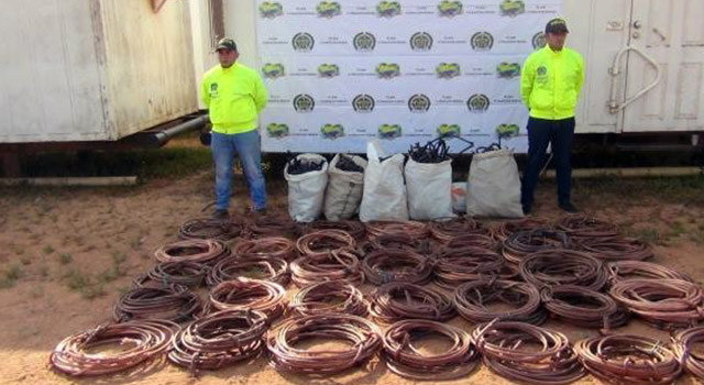 El hurto de cable que cobre es uno de los principales eslabones de financiamiento ilegal por parte de las organizaciones criminales, por eso durante el 2017, se han desarrollado acciones efectivas contra este flagelo, como la desarticulación de la banda delincuencial ‘los chatarreros’ vinculada en más de 23 hurtos y la recuperación de 2.1 toneladas de cable de cobre, avaluados en 1.222 millones de pesos.
