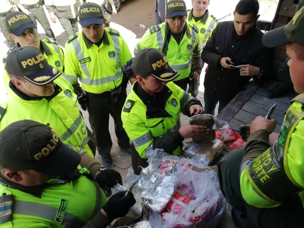 En desarrollo del plan de choque 100 días “El que la hace la paga, más cerca del ciudadano”, unidades adscritas a la Seccional de Tránsito y Transporte de la Policía Metropolitana de Tunja, lograron en las últimas horas, la incautación de más de 400.000 dosis de marihuana, la captura en flagrancia de una persona y la inmovilización de un vehículo tipo camión.