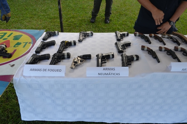 De igual forma, en diferentes procedimientos policiales se han incautado 185 armas de fuego, en aplicación al Decreto 2535 de 1993 y la Ley 906 de 2004 Código de Procedimiento Penal, las cuales posteriormente son entregadas al departamento de control de comercio de armas para su respectiva destrucción, y estos residuos a su vez son llevados a una empresa siderúrgica para su respectiva fundición.