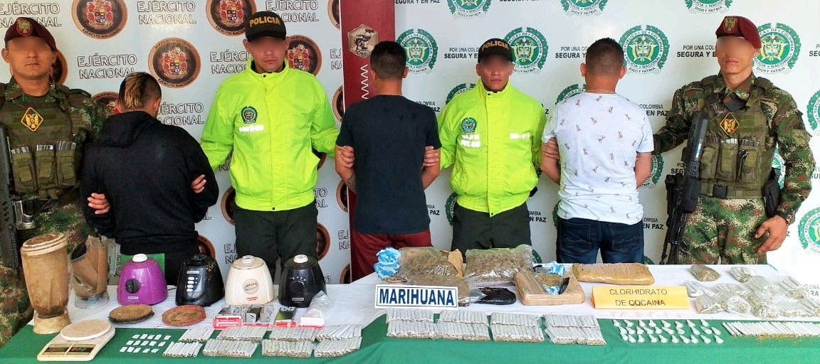 Siguiendo las directrices del Gobierno Nacional a través del Plan Estratégico Institucional 2019-2022 “Colombia bicentenaria, seguridad con legalidad”, en un trabajo conjunto con el Ejército y la Fiscalía en el barrio Andes Bajos de Florencia, mediante labores de investigación y seguimiento se logró gracias a cuatro diligencias de registro y allanamiento la captura de dos hombres de 27 y 32 años de edad, la aprehensión de dos adolescentes de 16 y 17 años y la incautación de estupefacientes listos para comercializar en este sector de la ciudad; además en coordinación con la administración municipal fueron derribados los cuatro inmuebles que eran utilizados como fachada para expender esta sustancia que afecta la salud de las personas, atacando de manera contundente los sitios conocidos comúnmente como “zonas de miedo”.