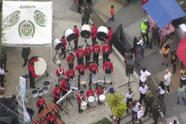 Luego de las actividades lúdico-recreativas que adelantamos en esta zona de la ciudad, con el objetivo de fortalecer la cultura ciudadana, el respeto, el ejercicio responsable de la libertad, dignidad y el uso de mecanismos alternativos para la resolución de conflictos dirigido a padres e hijos, 40 niños y niñas de la banda músico marcial del Liceo Salazar y Herrera, durante 2 horas, ambientaron con un concierto a la comunidad que vive en el sector y a los 600 turistas que en promedio suben diariamente para conocer esta zona de la capital de Antioquia.