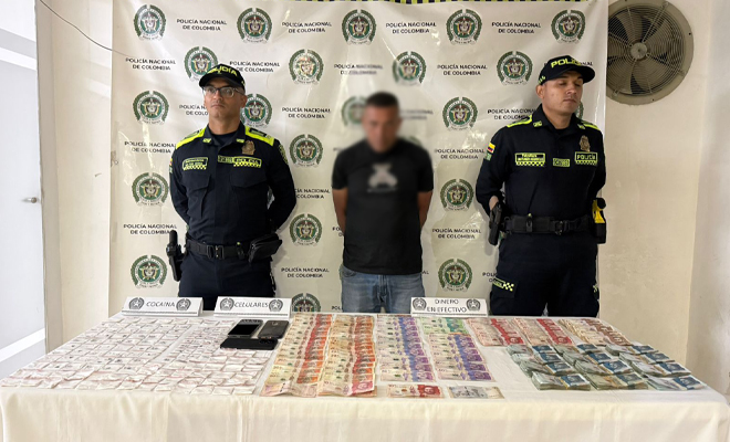 Fue capturado alias “Ferrer”, de 46 años, natural de Quinchía (Risaralda), quien sería un presunto actor delincuencial encargado de dinamizar el tráfico de estupefacientes tipo cocaína, la cual era dosificada y distribuida en expendios móviles del sector. Durante la captura, se incautaron 78 dosis de cocaína y un teléfono celular.