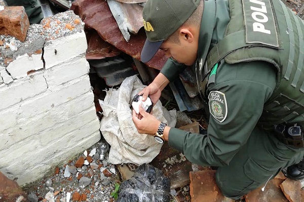 Los uniformados al estar en el sitio removieron los escombros hallando en medio de estos un arma de fuego de fabricación artesanal, así como varias dosis de bazuco listas para ser comercializada.