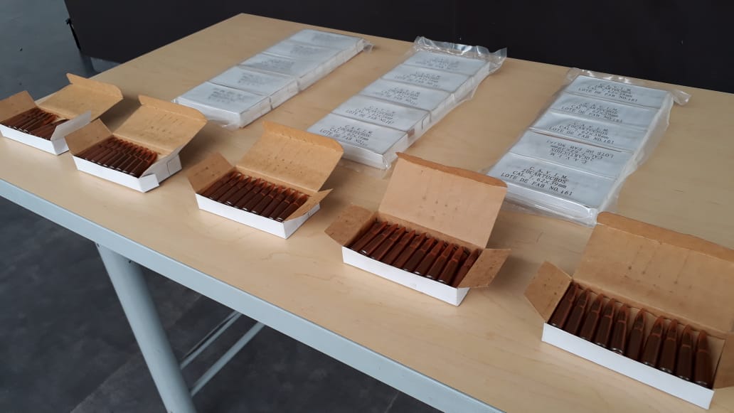 En el momento de ser verificada la munición se pudo establecer en las marcas visuales de este material bélico, que corresponden una Compañía de Industria militar de un país sudamericano.