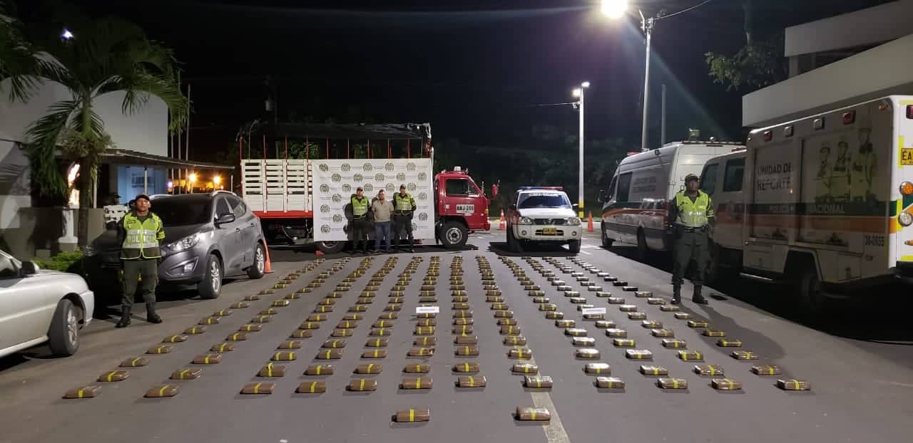 El primer hecho se registró en la vía Santander de Quilichao- Palmira, mediante registro y control a vehículos de carga, donde gracias a la pericia de los uniformados, se halla un alijo oculto en la modalidad de caleta doble piso, 300 kilos de marihuana, igualmente se captura a una persona