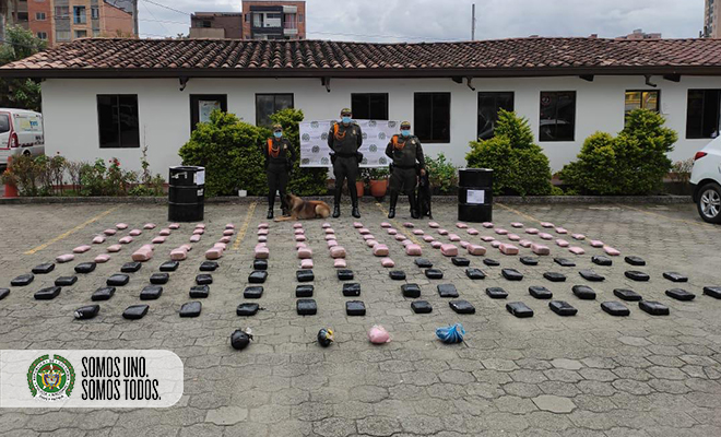 La policía Nacional, en desarrollo del Plan "Construyendo Seguridad", con el apoyo de caninos de la especialidad de Carabineros, tras la ejecución del ‘Plan Escudo’, mediante actividades de registro y control a empresas de mensajería, logró incautar 140 kilos de marihuana y 3 kilos de base de cocaína.