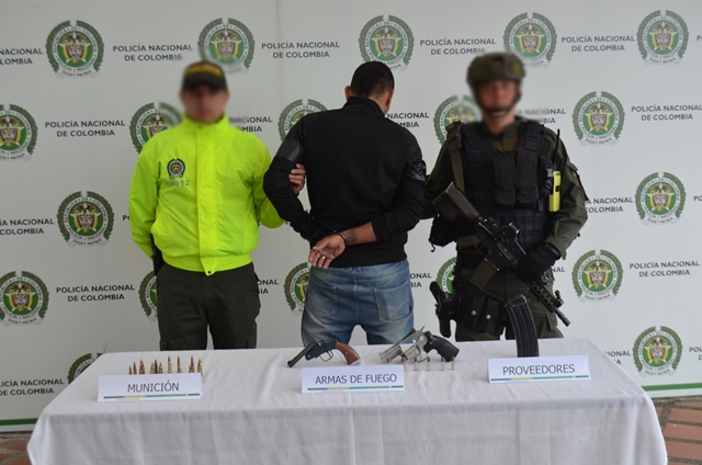 La acción operativa se llevó a cabo en la avenida Belalcazar con calle 18 barrio Mejía Robledo de la capital risaraldence, hallándole al interior de su vivienda un arma de fuego tipo revolver (fogueo), un arma de fuego doble cañón de fabricación artesanal calibre 5.56, un proveedor para fusil calibre 5.56, 19 cartuchos para el mismo.